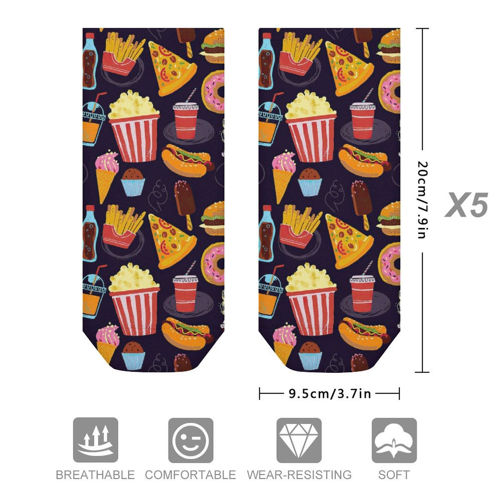 This pack provides five identical pairs of your custom-designed ankle socks. Outfit your entire work week, create unforgettable matching gifts for a group, or simply ensure your favorite design is always ready to go.