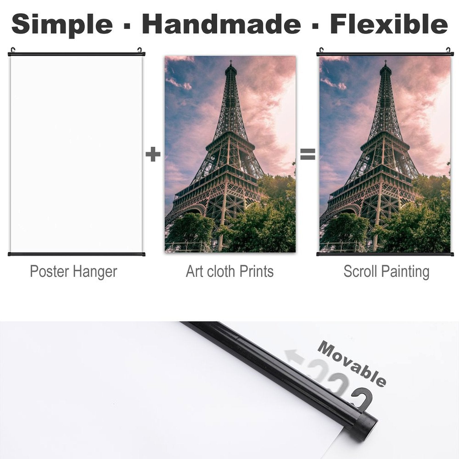 Forget the hassle of frames and glass. Your canvas is mounted on a stylish, minimalist scroll hanger. It's a clean, modern look that lets your art take center stage. The adjustable hooks make it easy to hang and perfectly level in seconds. It's a complete, effortless system for a stunning, contemporary display.