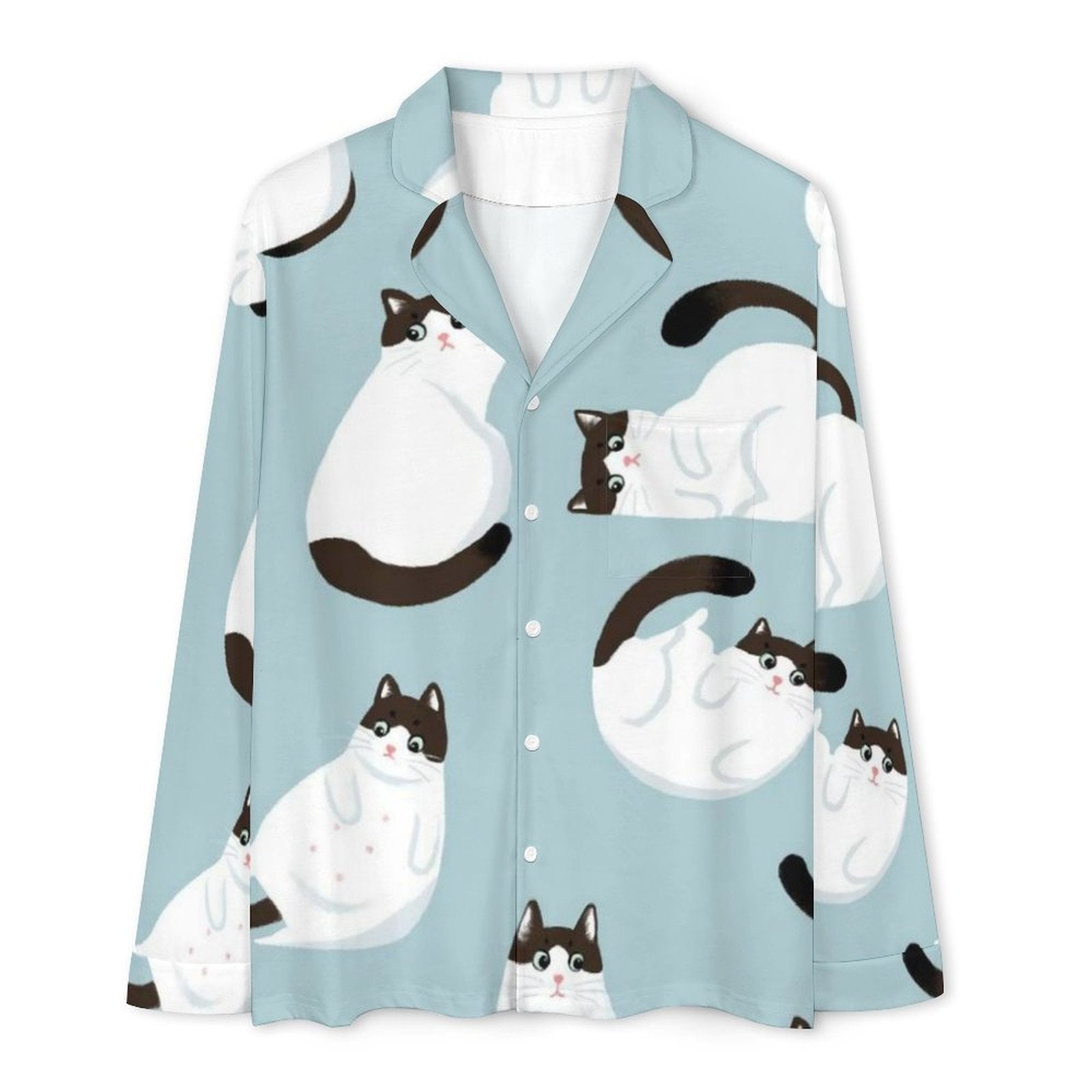 At the heart of this set is the Cuban collar—an icon of mid-century style, also known as the camp or revere collar. Its open, notched lapel creates a relaxed yet sophisticated V-neck that immediately elevates the garment beyond simple sleepwear. This is a considered design choice, a nod to an era of effortless, confident style, now reimagined for modern leisure.