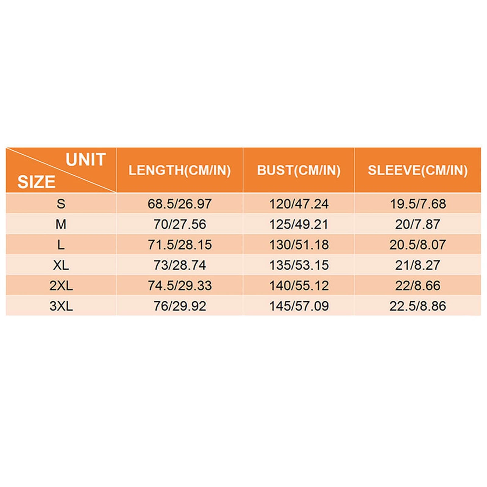 Size | Length (cm/in) | Bust (cm/in) | Sleeve Length (cm/in) |