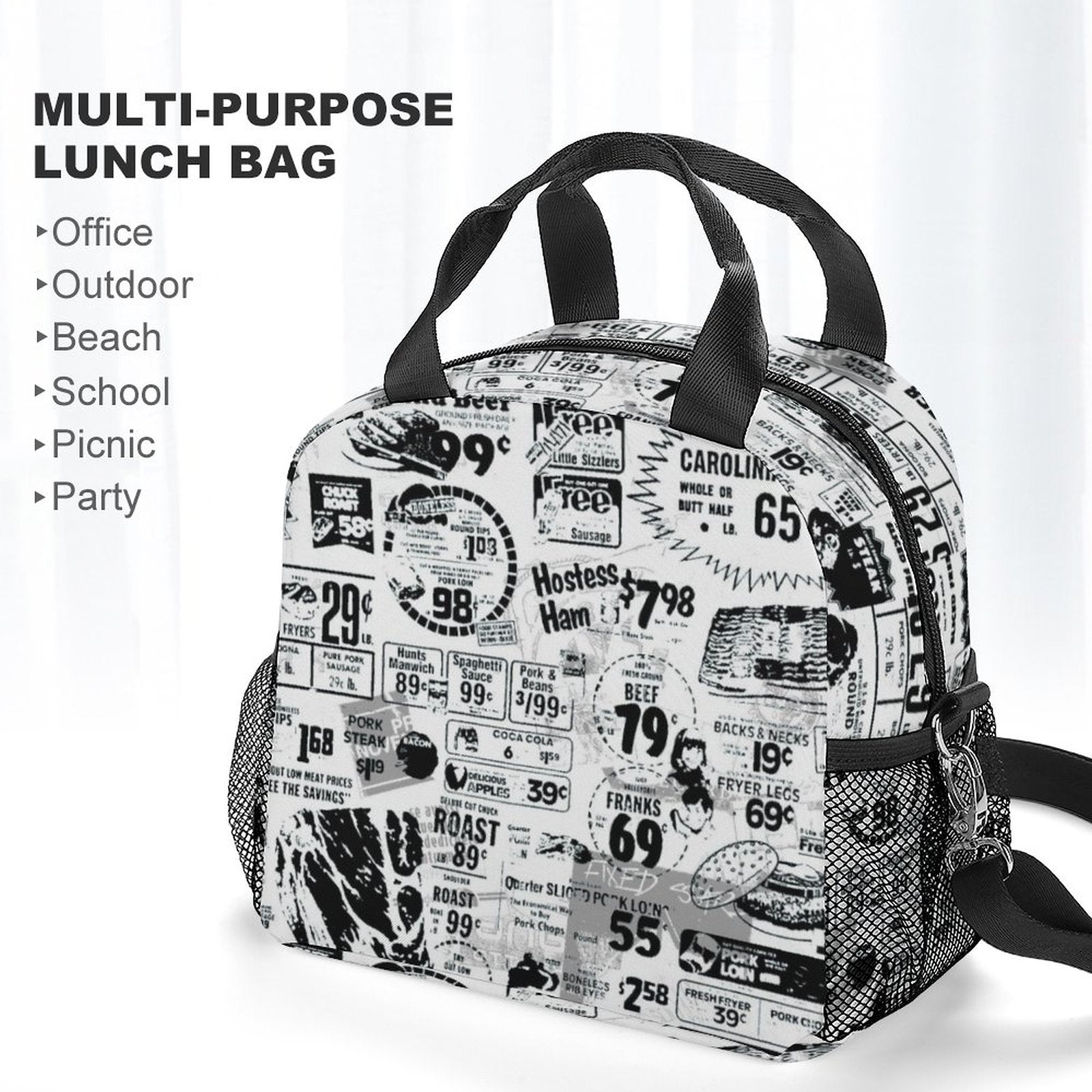 - Smart Storage Organization: We maximized every inch. The spacious main compartment fits your bento box and snacks, while the clever mesh side pockets are perfect for storing non-food essentials like your phone, keys, napkins, or a small umbrella.