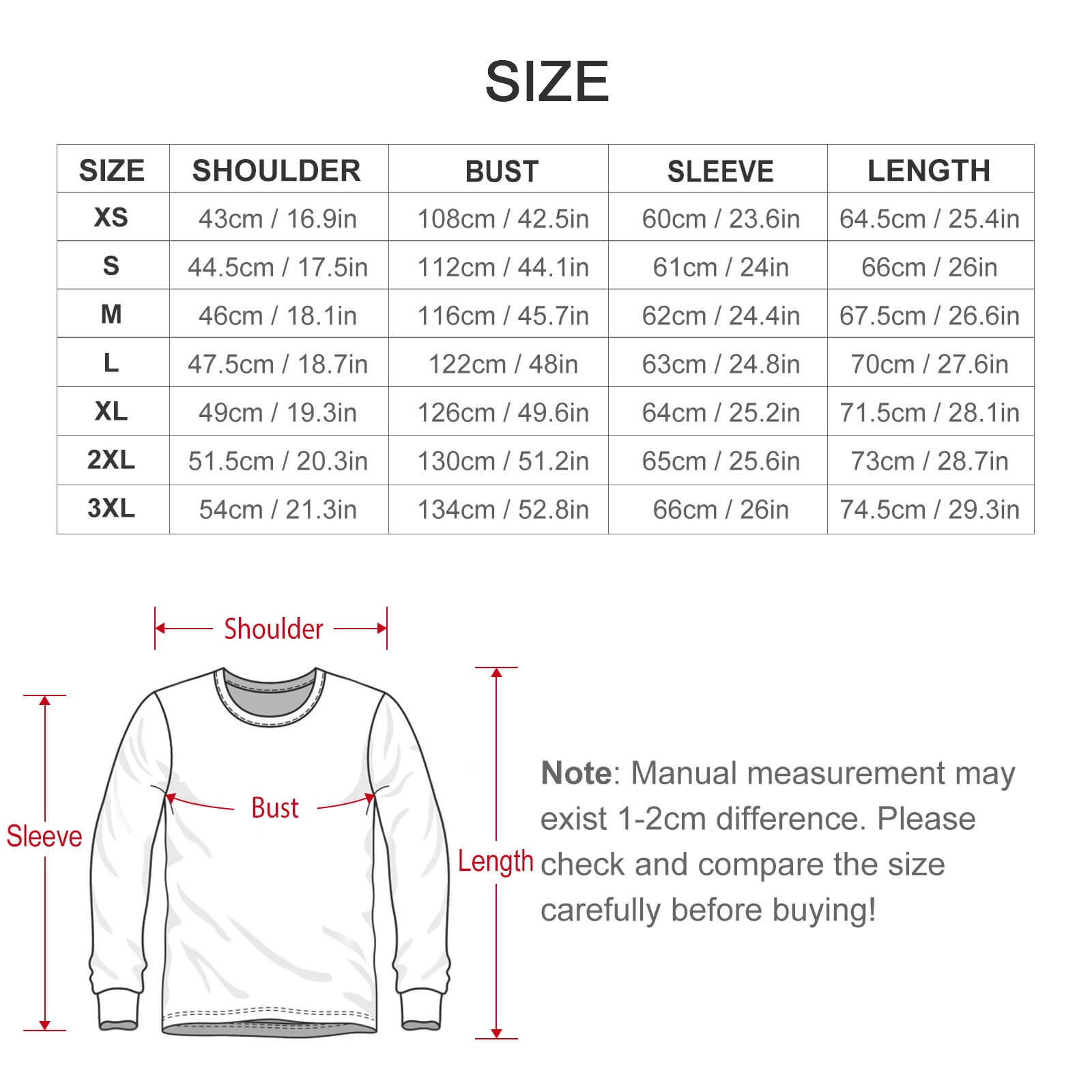 3XL | 54/21.3 | 134/52.8 | 66/26 | 73/28.7 | 85-135/33.5-53.1 | 140/55.1 | 114/44.9 |