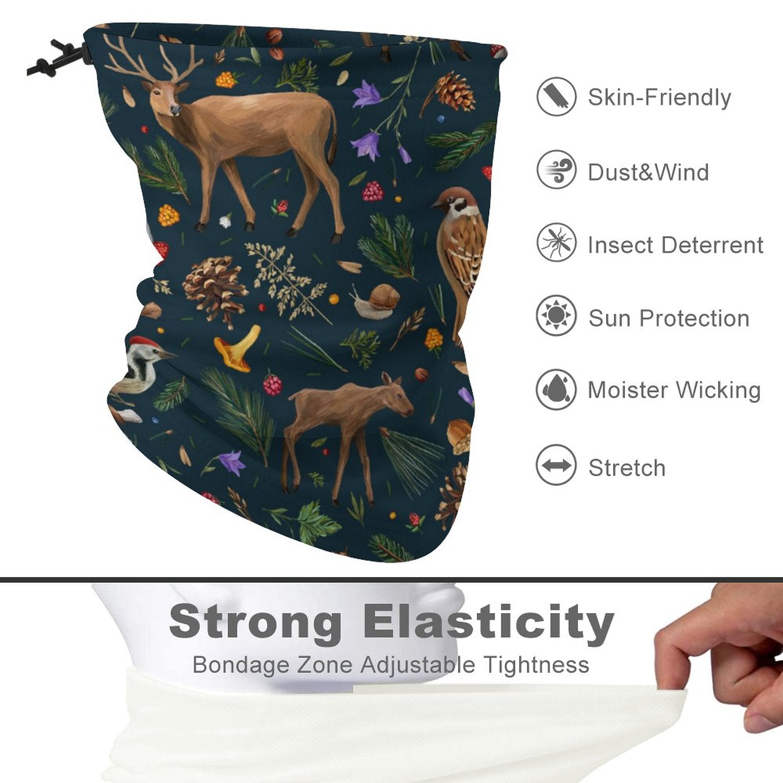 Standard buffs slide down your nose the moment you start moving. We integrated a Drawstring Toggle System. Cinch it tight, and it stays locked on your face, whether you're bombing down a ski slope or riding into a headwind.