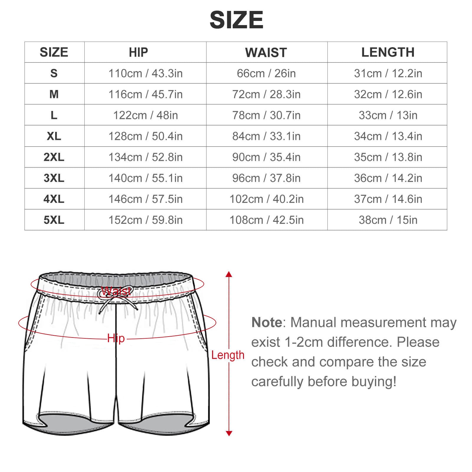 Size | Bust (cm/in) | Top Length (cm/in) | Hips (cm/in) | Waist (cm/in) | Shorts Length (cm/in) |