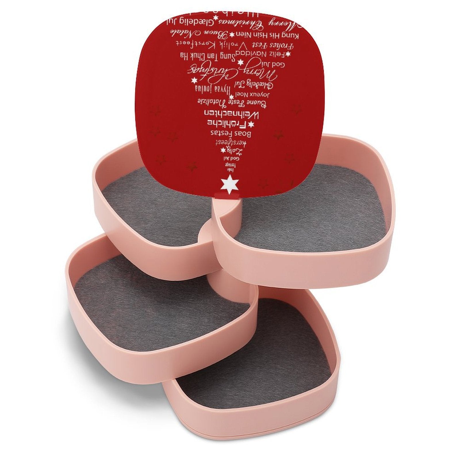 Traditional jewelry boxes hide your treasures away in tangled heaps. We envisioned a smarter way. Each of the four tiers in this tower swivels independently on a central axis. With a gentle push, they fan out, instantly revealing everything at a glance. Find that perfect pair of earrings, the right necklace, the ideal ring—all without digging. When you're done, they glide back into a sleek, dust-proof cylinder, keeping your vanity clean and uncluttered.