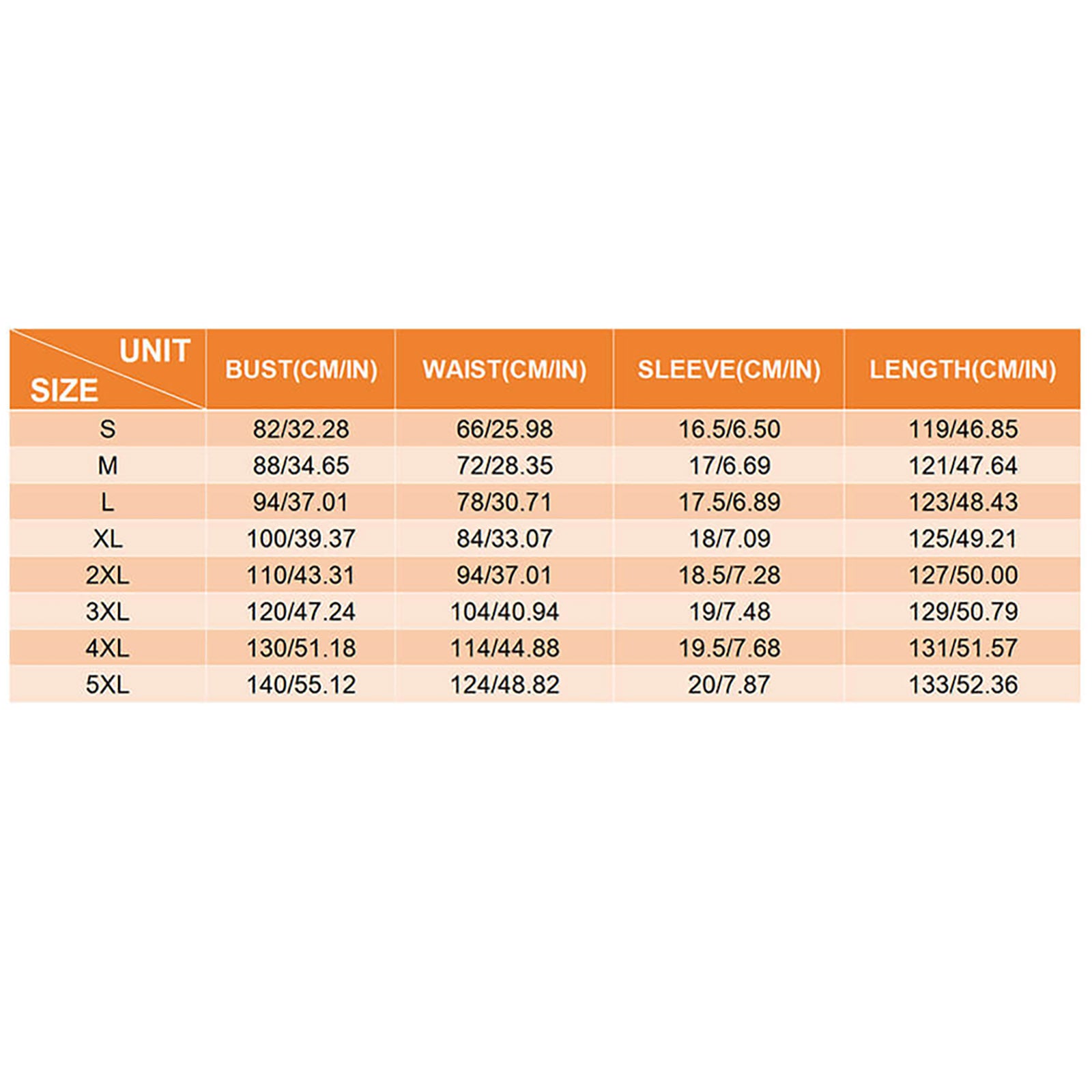 Size | Bust (cm/in) | Waist (cm/in) | Sleeve Length (cm/in) | Dress Length (cm/in) |