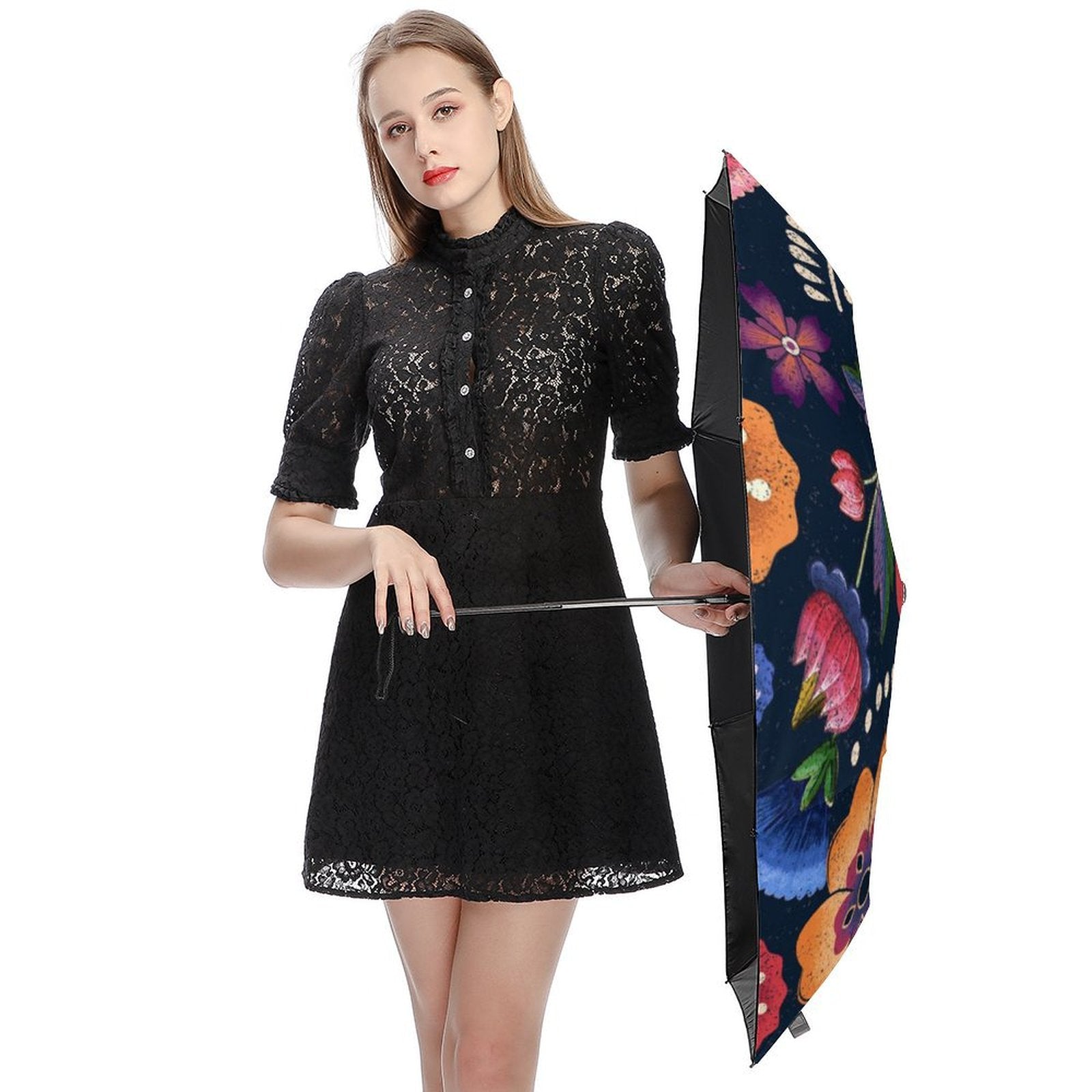 Beneath the art lies a functional sanctuary. The interior is lined with a dense black vinyl layer, specifically engineered to block and absorb harmful UV radiation. This creates a cool, personal shade that protects your skin, making this an essential tool for both storms and harsh sunlight.