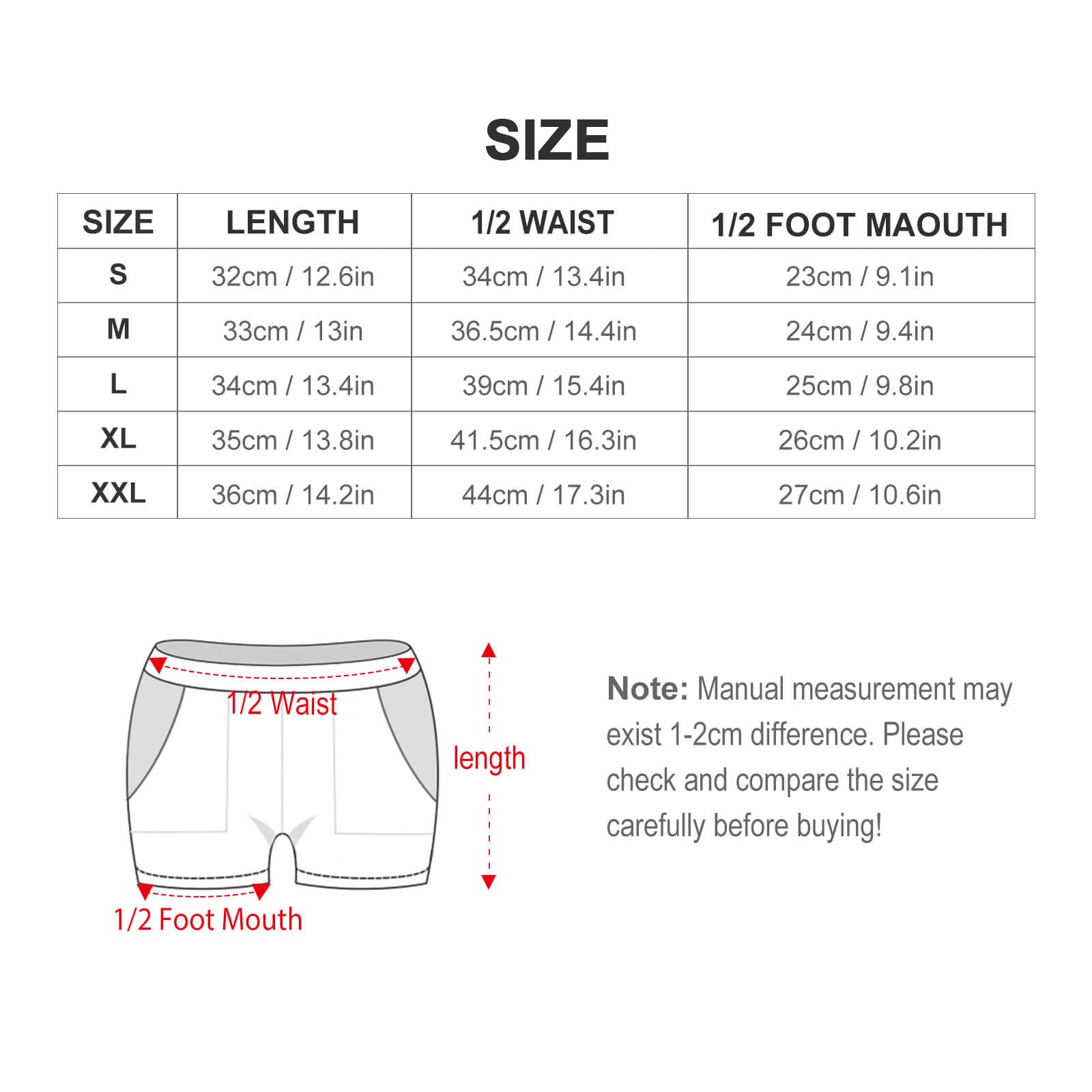 | Size | Length (cm/in) | 1/2 Waist (cm/in) | 1/2 Leg Opening (cm/in) |